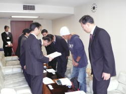 | ◆11/2 嘆願書提出 皆さんから預かった嘆願書を提出する為に県庁へ。 港湾事務所所長、県土整備部港湾課課長、他4名の方と話し合いがなされた。 行政も利用者代表と話をしながら、良い整備を進めていきたい気持ちが強くある事の確認が出来ました。 「最終的に1900名以上集まった署名の事実は、重く受け止めさせて頂きます」 県土整備部港湾課課長から出さた言葉です。 「自分達は、行政を批判するだけでは無く、利用者の望む形の整備事業を進めてもらう為にはどうすれば良いのかを問いたいのが主旨」 そこを強く伝えました。